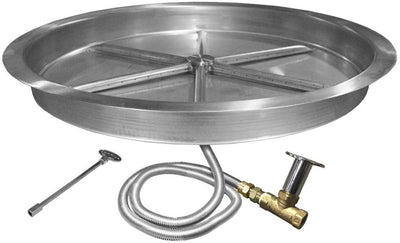 The FPB-RBSTFS UL Listed Electronic Ignition Gas Fire Pit Burner Kit, Round Bowl Pan by Firegear provides a high quality burner system to complete your gas fire pit project. Both the burner and the pan are constructed from heavy duty 304 stainless steel to create a long lasting and durable product while the unique "spur" design creates a realistic flame appearance. Firegear's unique thermocouple flame sensing (TFS) kits are designed to provide a simple electronic ignition system that includes an automatic flame sensor in order to monitor flame presence and shut off gas supply if flames are lost. These kits are UL Listed for ensured safety and include the RCAF-3 remote control for On/Off/High/Low operation.